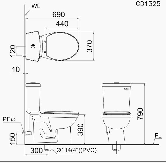 - Tiết kiệm nước với 2 chế độ xả: 3/ 4.5 lít.