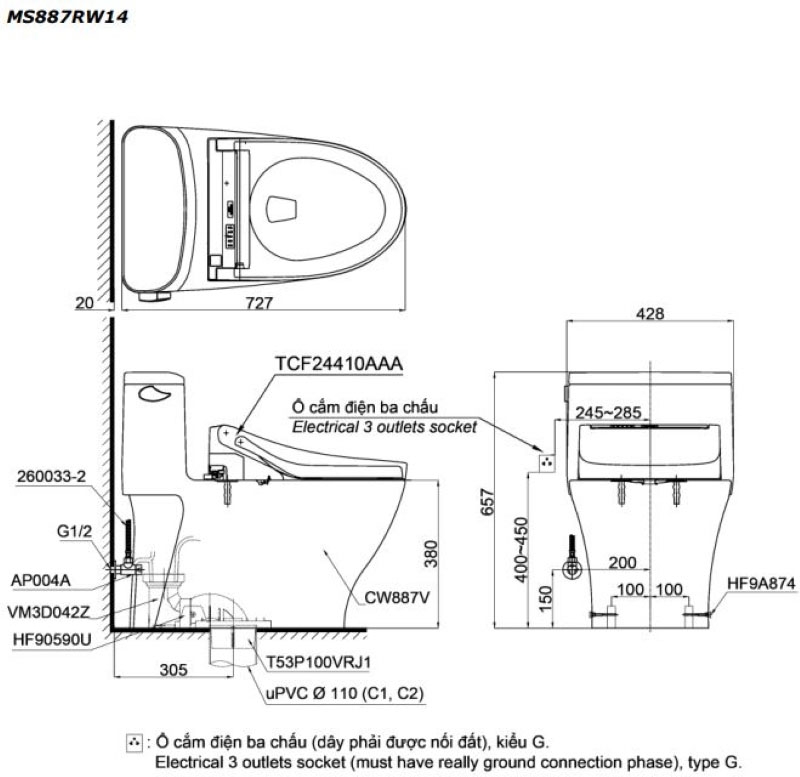 Bàn cầu TOTO MS887RW14 là sự kết hợp của mã bàn cầu MS887R và nắp rửa điện tử thông minh WASHLET dòng C5 với mã TCF24410AAA. Bộ kết hợp bàn cầu này rất phù hợp cho không gian phòng tắm mang phong cách tối giản, hiện đại. Sự tinh tế từ khâu sản xuất sứ cùng với những tính năng hiện đại của nắp rửa thông minh, MS887RW14 sẽ mang lại cho bạn trải nghiệm tuyệt vời mỗi khi sử dụng.
