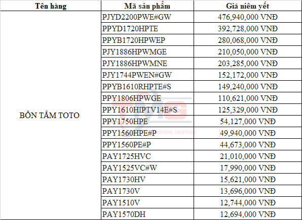 Báo giá thiết bị vệ sinh TOTO 2024 mới nhất