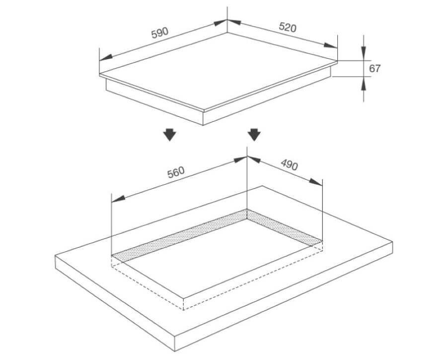 ♦ Kích thước bếp: W590 x D520 x H56mm