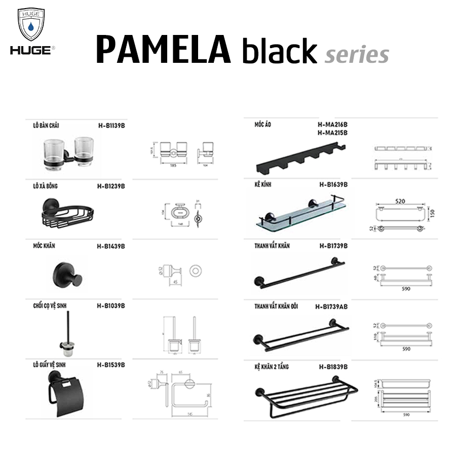 2. Lô xà bông Huge Pamela màu 𝑚𝑎𝑡𝑡𝑒 𝑏𝑙𝑎𝑐𝑘 H-B1239B