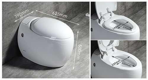 - Thiết kế bồn cầu không két nước phá vỡ kích thước bồn cầu truyền thống, kích thước nhỏ (chiều dài 580-600MM, chiều cao khoảng 400MM) thiết kế làm giảm đáng kể khối lượng ban đầu của một bồn cầu truyền thống, tạo ra 1 phòng tắm rộng rãi, sạch sẽ.
