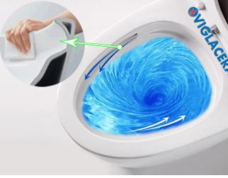 Với 2 lỗ xả lớn phía trên tạo ra dòng nước xoáy tráng đều bề mặt bồn cầu, và một dòng nước phía dưới có tác dụng đẩy các chất thải đi một cách nhanh chóng.