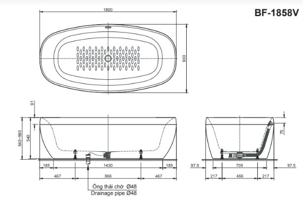 - Mặt đáy bồn được thiết kế chống trượt, an toàn cho người sử dụng