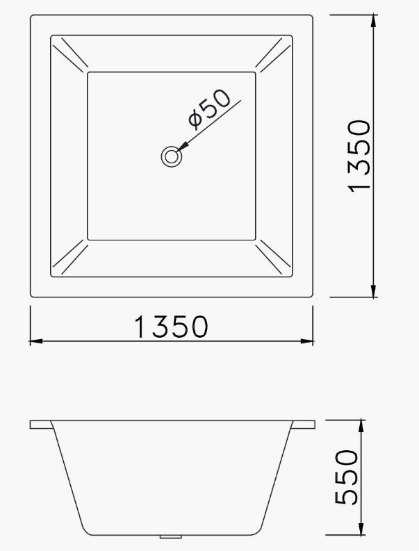 Bản vẽ kỹ thuật bồn tắm vuông Caesar AT7135 1.3M