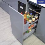 – Giá dao thớt – gia vị nan oval có hệ thống ray giảm chấn chuyển động nhẹ nhàng, êm ái, giảm tiếng ồn trong không gian bếp một cách hiệu quả.