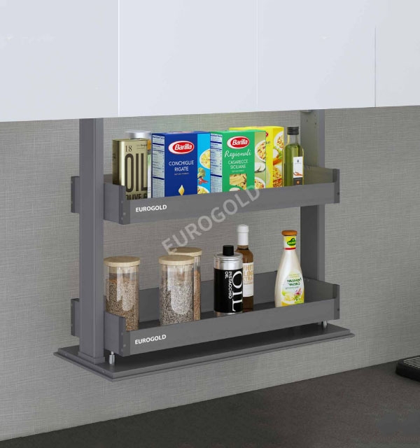 +Giá gia vị điện hoạt động dựa vào bộ cảm biến và hệ thống ròng rọc cùng ray trượt.