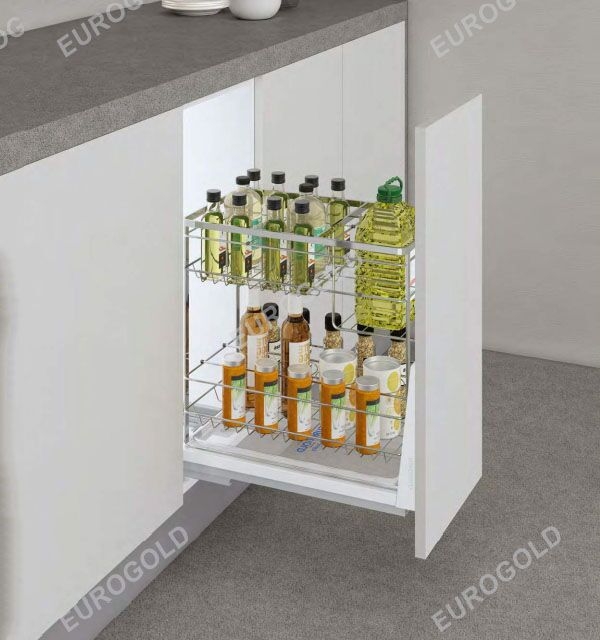 Với thiết kế đơn giản nhưng thông minh cùng 2 tầng giá được tối ưu để được cực nhiều chai lọ gia vị, Phụ kiện Eurogold này sẽ là trợ thủ giúp bạn biến căn bếp trở nên gọn gàng, ngăn nắp, khoa học hơn.