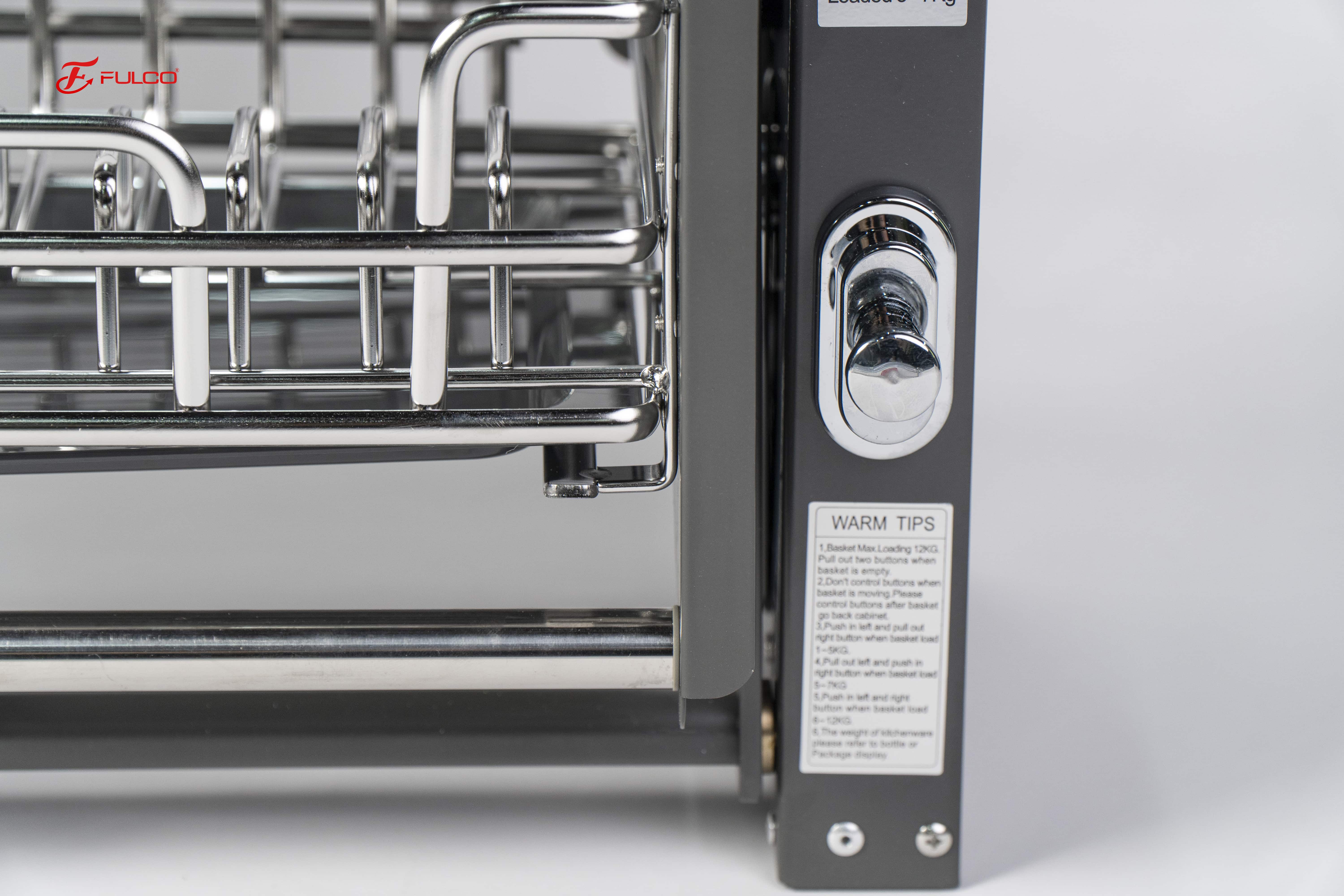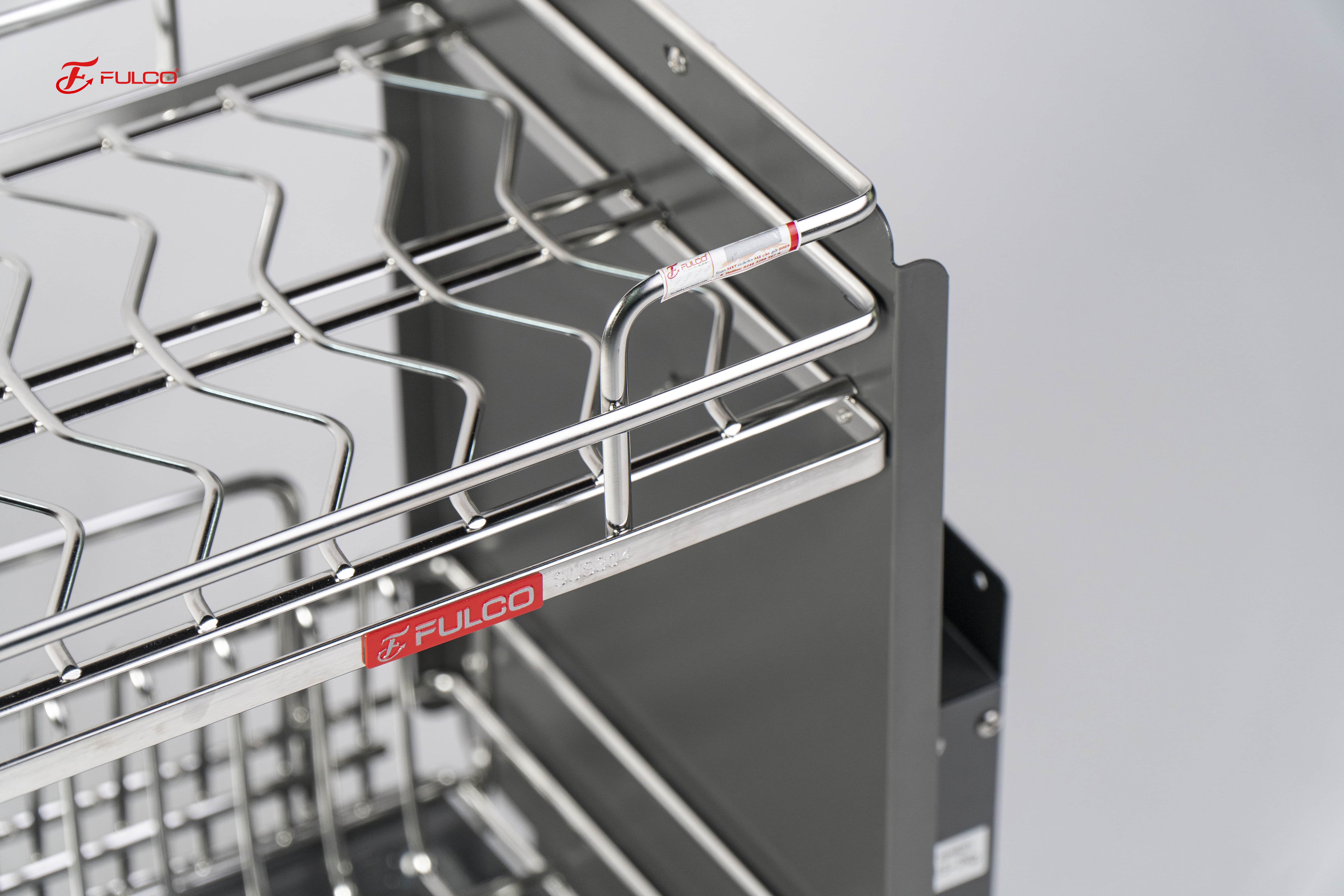 Giá bát nâng hạ thông minh Fulco được chế tạo bằng chất liệu Inox 304 đảm bảo được sự sáng bóng, bền chắc. Nếu muốn căn bếp trở nên sáng và đẹp hơn, thì đây là một sản phẩm mà bạn không thể bỏ qua được lòng rất nhiều bà nội trợ bởi kiểu dáng hiện đại, mang lại cảm giác sang trọng cho không gian bếp. Kích thước vừa vặn với cấu trúc 2 tầng, giúp bạn có thể đựng bát đĩa thoải mái mà không lo chật chội.