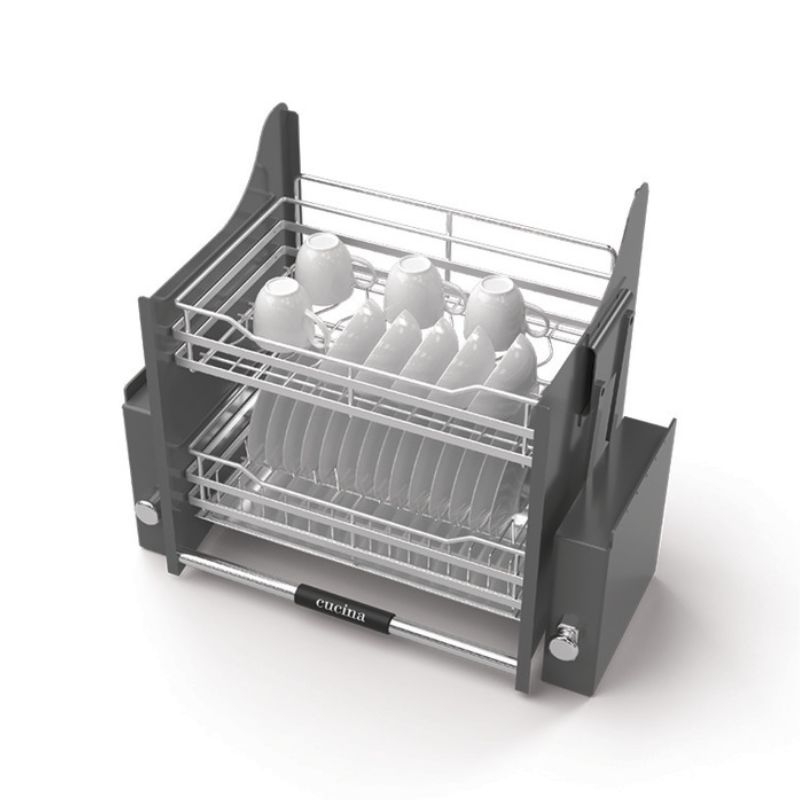 - Trọn bộ gồm : rổ chén đĩa 2 tầng, khay hứng nước, bộ ốc lắp đặt