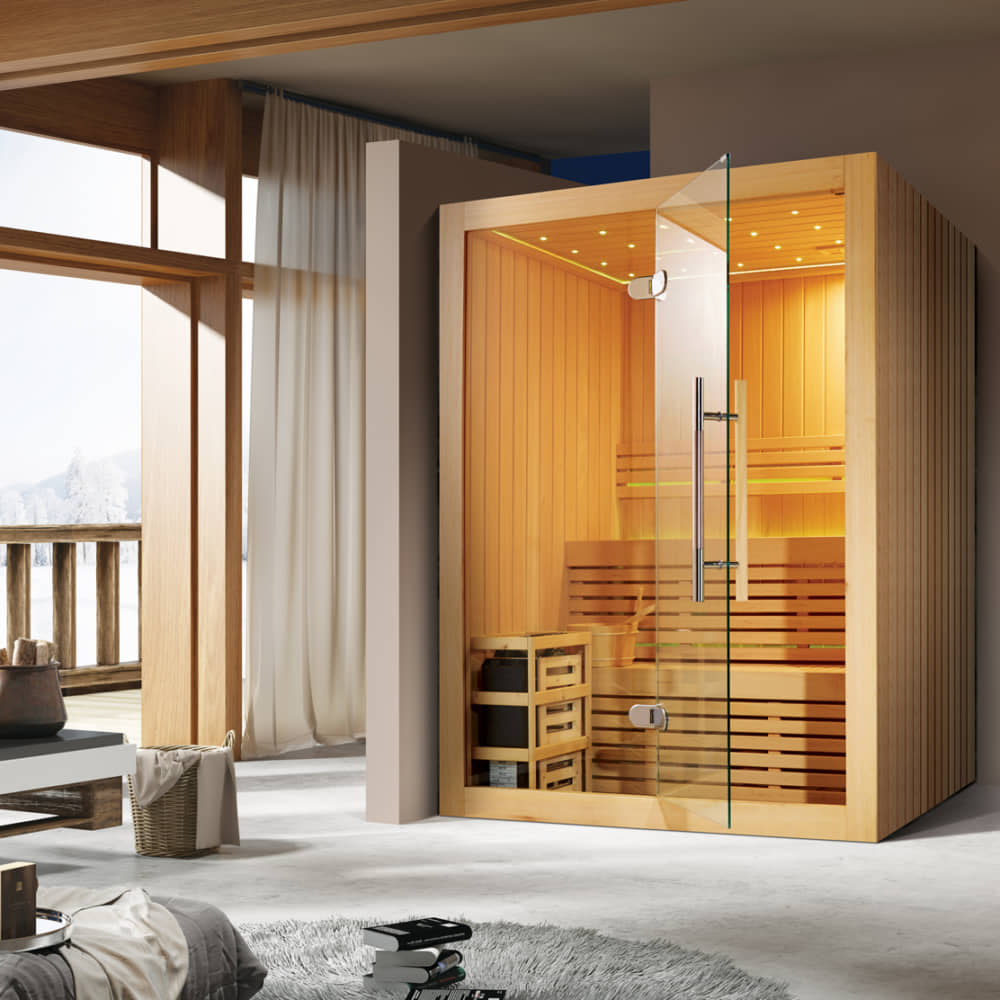 Sản phẩm được thiết kế hiện đại, sang trọng, đẳng cấp mang hơi hướng phong cách cổ điển và tân cổ điển. Phòng tắm xông hơi A-7801 được sản xuất từ gỗ nhập khẩu cao cấp với độ bền và khả năng cách nhiệt cao, ngoài ra phòng xông hơi A-7801 còn được trang bị vách ngăn chống thấm bao phủ bởi Acrylic đảm bảo độ chống thấm và ẩm mốc cho vách ngăn, duy trì tuổi thọ cho phòng tắm.