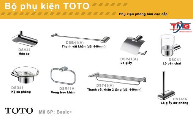 Một bộ phụ kiện nhà tắm TOTO cơ bản thường bao gồm: