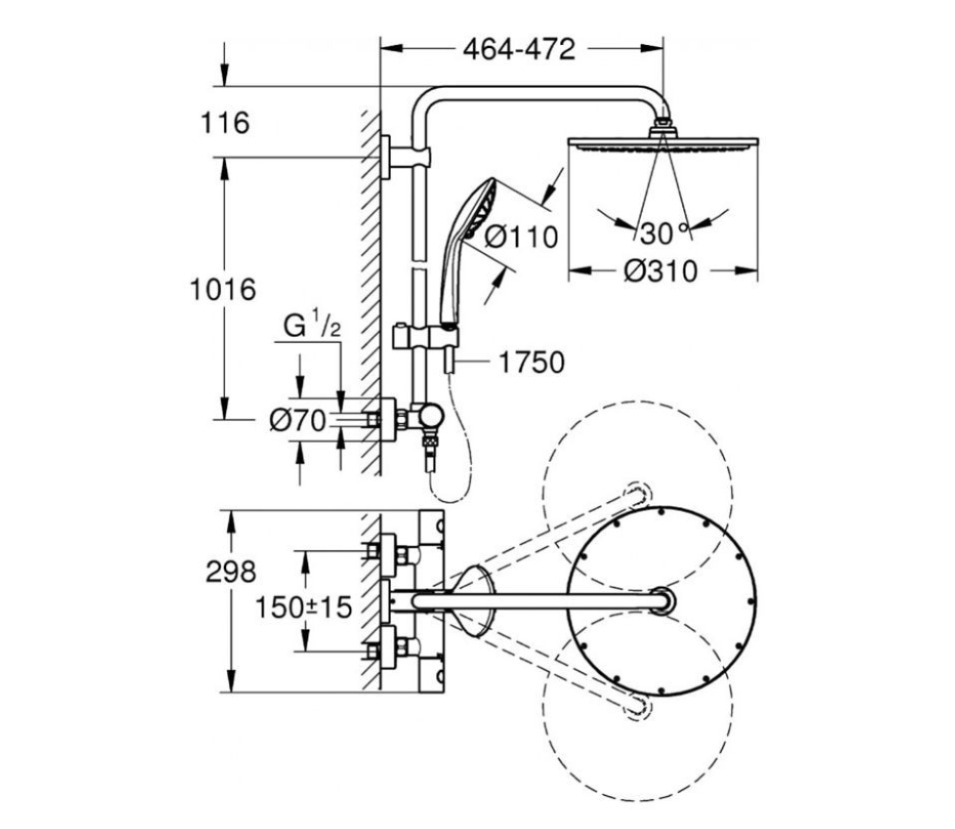 Thiết kế bát sen có kích thước lớn. Tích hợp công nghệ GROHE DreamSpray với đầu vòi hoa sen tiên tiến. Đảm bảo dòng nước cân bằng từ tất cả loại đầu phun giúp bạn tận hưởng cảm giác thư giãn trên cơ thể, thoải mái tâm trí và giải tỏa căng thẳng.