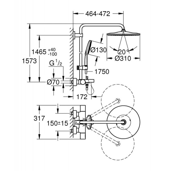 Thiết kế bát sen có kích thước lớn. Tích hợp công nghệ GROHE DreamSpray với đầu vòi hoa sen tiên tiến. Đảm bảo dòng nước cân bằng từ tất cả loại đầu phun giúp bạn tận hưởng cảm giác thư giãn trên cơ thể, thoải mái tâm trí và giải tỏa căng thẳng.
