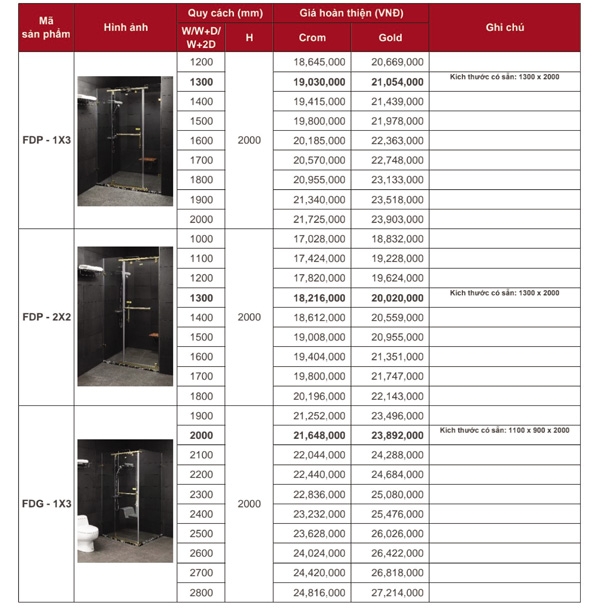 – Giá trên đã bao gồm chi phí hỗ trợ lắp đặt 400.000đ/01 phòng tắm kính.