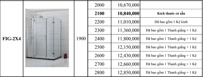 – Giá trên đã bao gồm chi phí hỗ trợ lắp đặt 400.000đ/01 phòng tắm kính.