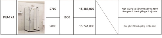 – Giá trên đã bao gồm chi phí hỗ trợ lắp đặt 400.000đ/01 phòng tắm kính.