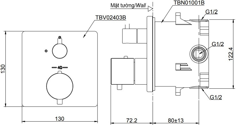 - TBV02403B: Van điều chỉnh nước nóng lạnh